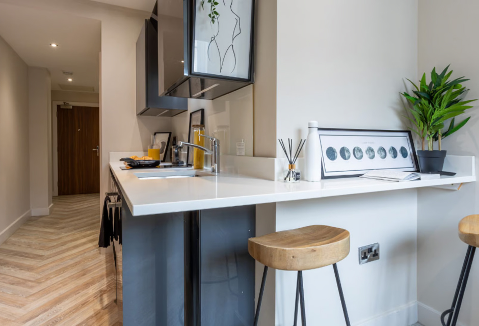 Our range of studios and apartments are meticulously crafted to offer superior quality, providing a premium living experience in one of the UK’s most renowned student cities. Featuring innovative space-saving solutions like floor-to-ceiling units and a secure key fob entry system, this property boasts amenities designed for your convenience.